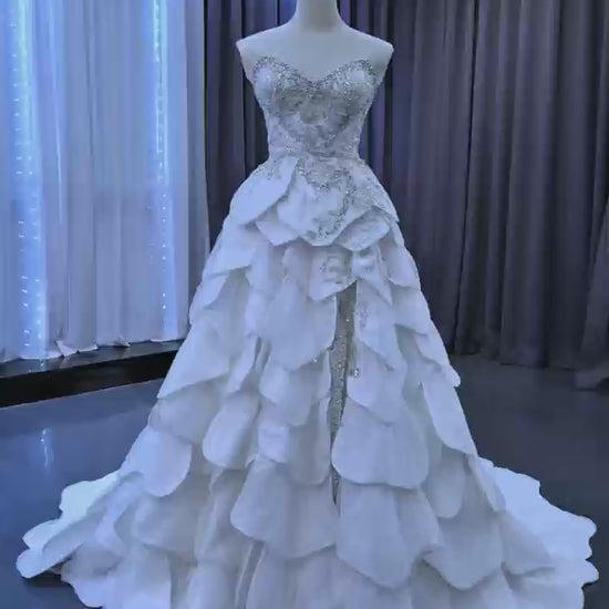 - Jaw-dropping, stunning wedding dress, with a layered and multi-fabricated design.